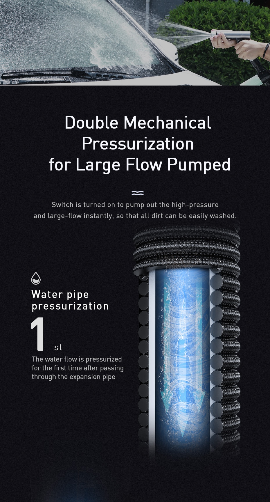 Baseus – GF5 Car Wash Spray Nozzle With 30m Water Pipe – Black