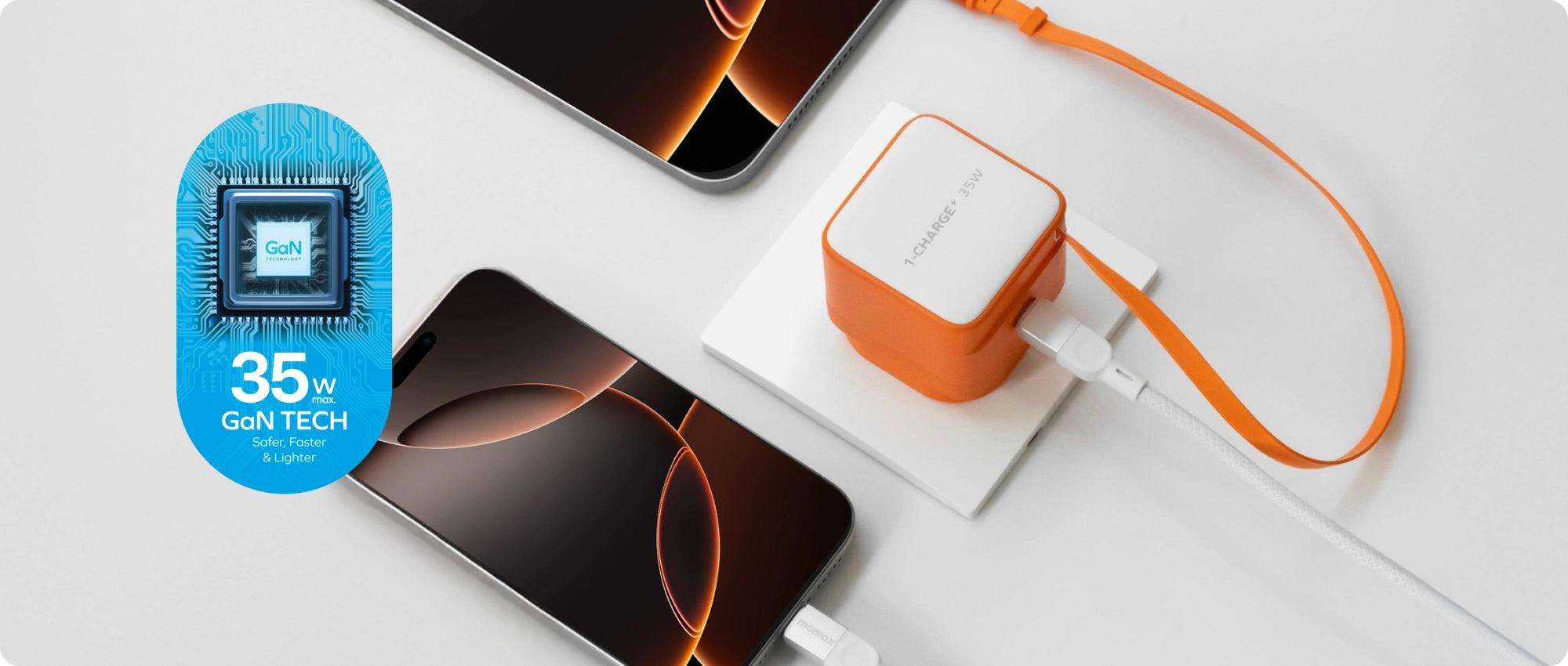 1-Charge+ 1-Port GaN Charger With Built-In USB-C Cable 35W