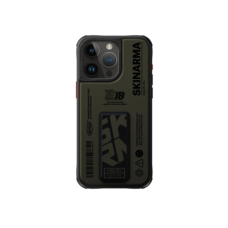Slim protective case with integrated foldable grip-stand and corner bumper protection, designed with magnetic charging compatibility and completed with SPUNK’s iconic textured finish and raised print design for that extra touch of attitude.