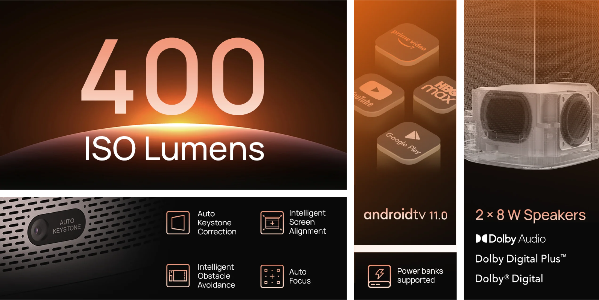 • Android TV 11.0, Thrilling 3D Movies at Home: MoGo 2 decodes 4K video smoothly and supports 3D content. With the upgraded Android TV 11.0, you get the ultimate user-friendly experience.